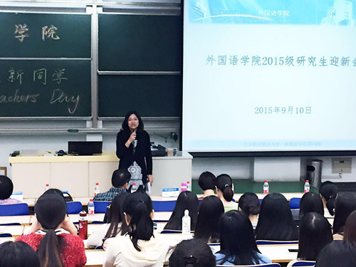 在悠扬的《仰望星空》校歌歌声中,开学典礼告一段落。然后,研究生教务秘书吴珊老师就研究生培养环节、研究生选课等注意事项向新同学进行了简要说明。作为本次会议最重要的环节,2015级导师见面会为学生与导师之间架起了认识与沟通的桥梁,也为此后导师与学生共同完成研究生培养奠定了基础。