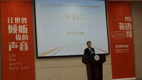 2016年12月10日,第二十二届中国日报社“21世纪杯•可口可乐杯”全国英语演讲比赛在北京航空航天大学新主楼报告厅正式开幕。北航2014级英语精英班的张宁同学和杜馨蕊同学经过层层选拔,最终进入北京赛区决赛,分别获得了大赛二等奖和三等奖。本次全国英语演讲比赛围绕着“人与科技”的主题,吸引了来自北京地区不同高校学生参赛,经过校选赛和网络评选,最终35名选手获得决赛资格。“21世纪杯”全国英语演讲比赛是非常具有权威的大学生英语比赛,在国内外拥有较高的声誉。