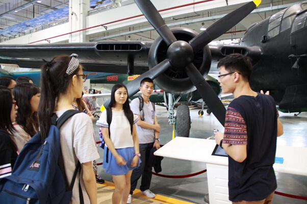 点,大家又来到了航空航天博物馆进行参观。走进航空航天博物馆,师生们被不同功能、不同名称的飞机吸引住了。经过北航研二志愿者的讲解,香港城大同学们对各架飞机的基本信息、历史、特性有了更深一步的了解。他们时而仰头观望硕大的飞机,时而向讲解员询问并请教。在同学们的热情追问下,讲解员为同学们绘声绘色地描述了航空史上声名赫赫的一些飞机