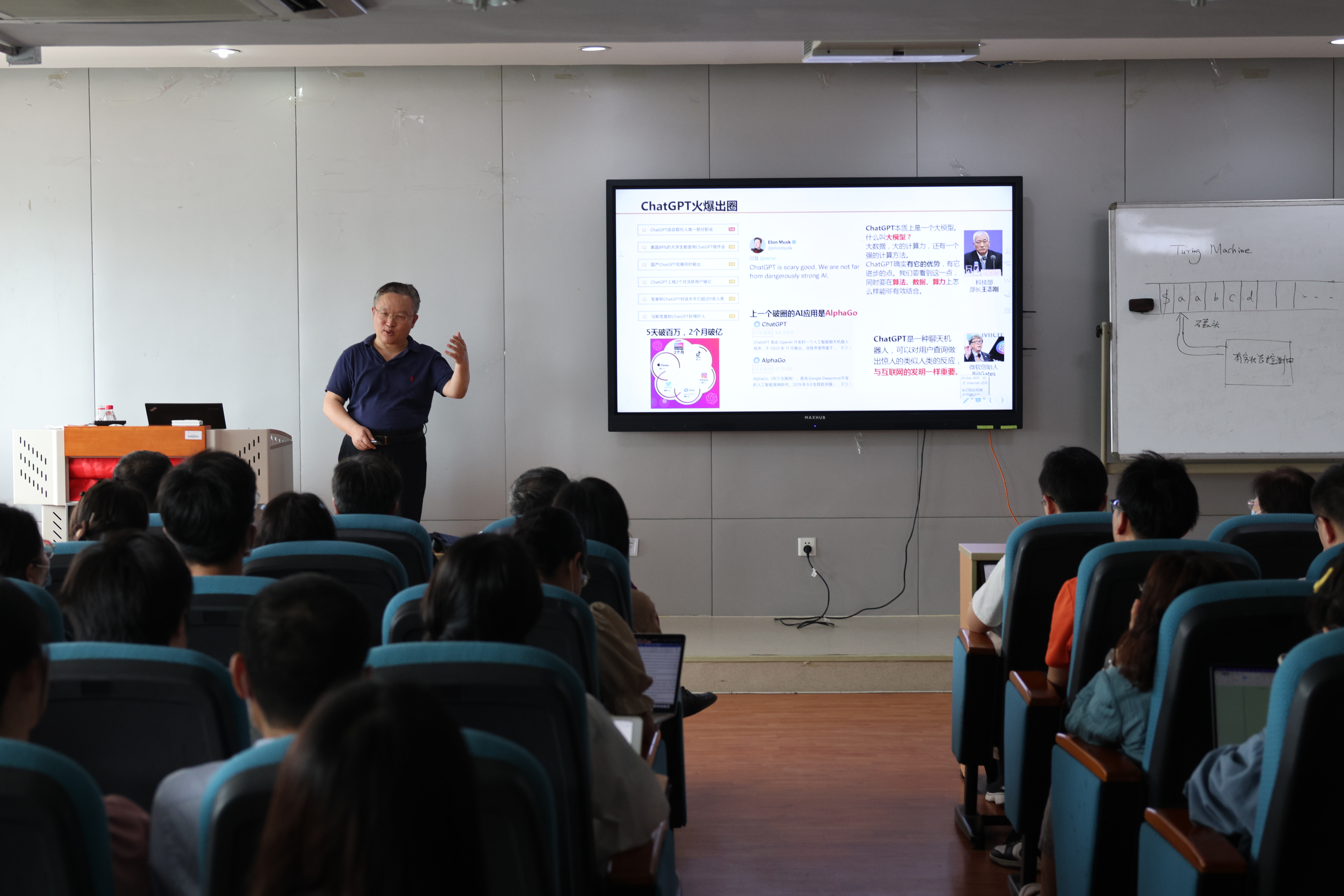 在学习贯彻习近平新时代中国特色社会主义思想主题教育中,澳门十大网投平台排行党委坚持把理论学习、调查研究、推动发展、检视整改有机融合、一体推进,注重将主题教育学习成果转化为高质量发展的新成效。为进一步科学凝练和谋划外国语言文学学科未来发展方向,落实“精品文科”建设要求,扎实推进新文科建设,结合校院两级管理体制改革试点工作,近日,澳门十大网投平台排行邀请计算机学院李舟军教授作题为“ChatGPT:背景、技术及应用”的专题报告。澳门十大网投平台排行党委委员、学术委员会主任卫乃兴教授主持报告,学院班子成员和广大教师、学生代表参加活动。