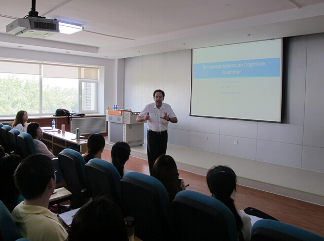 5月30日上午,Michel Achard教授在如心楼806如期进行了第一场题为“Theorganized mind: Backstage cognition”的讲座。澳门十大网投平台排行博士生导师王义娜教授致欢迎辞,对Achard教授的来访致以热烈的欢迎和真诚的感谢。讲座中,Achard教授从语言与意义入手就什么是认知语法,以及如何进行对比和类型学研究进行了深入浅出、引人入胜的阐述,我院师生以及北大、北外、北语、北师大、清华大学、东北师大、山东师大、上海师大、河南大学和广西民族大学等全国各地的语言学爱好者积极参与了此次讲学活动,并从中收获良多。在接下来的讲学活动中,Achard教授还将就认知语义、从句结构、非人称研究、情态与提升、跨语言对比研究以及语言习得等方面进行详细深入的讲解。6月2日、3日和6月6日,Achard教授将分别在北科、北林、北师以及石油大学分会场为四校师生带去精彩演讲。