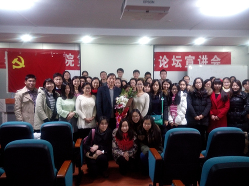 为深入推进学习和践行社会主义核心价值观,切实加强研究生的思想交流和沟通,调动广大研究生群体的积极性,澳门十大网投平台排行于2014年12月12日晚7点在如心806报告厅举行了新老党员思想交流活动,特地邀请了澳门十大网投平台排行马步宁教授与学生党员进行面对面交流。